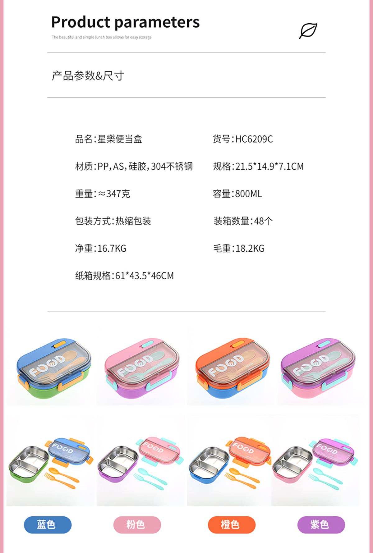 SWY-T208(水杯套裝):飯盒:215*149*71mm/1000ml 水壺:直徑82*高161mm/480ml