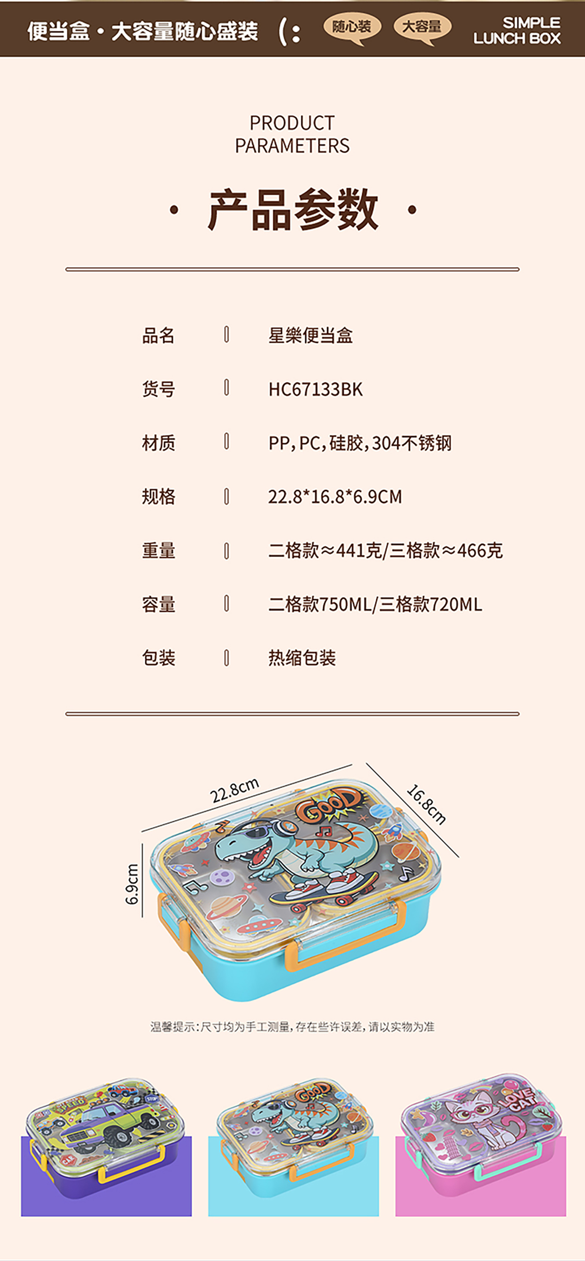Size: 228*168*69mm/二格750ml/三格720ml